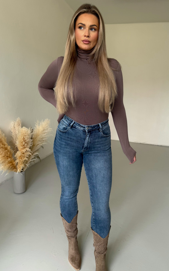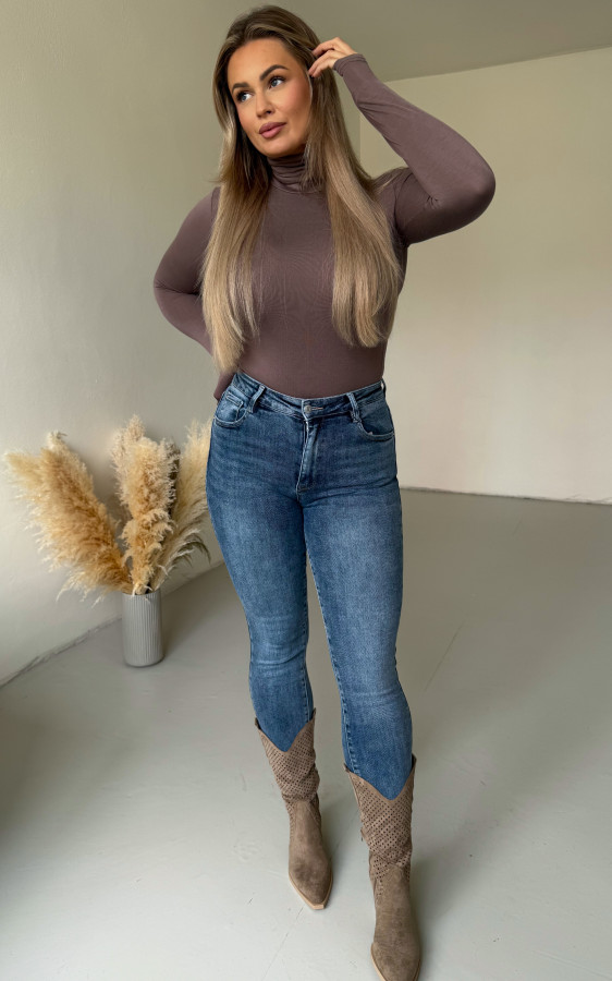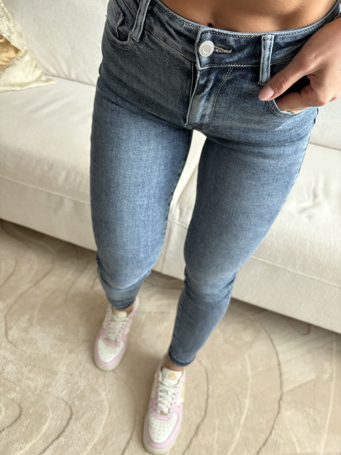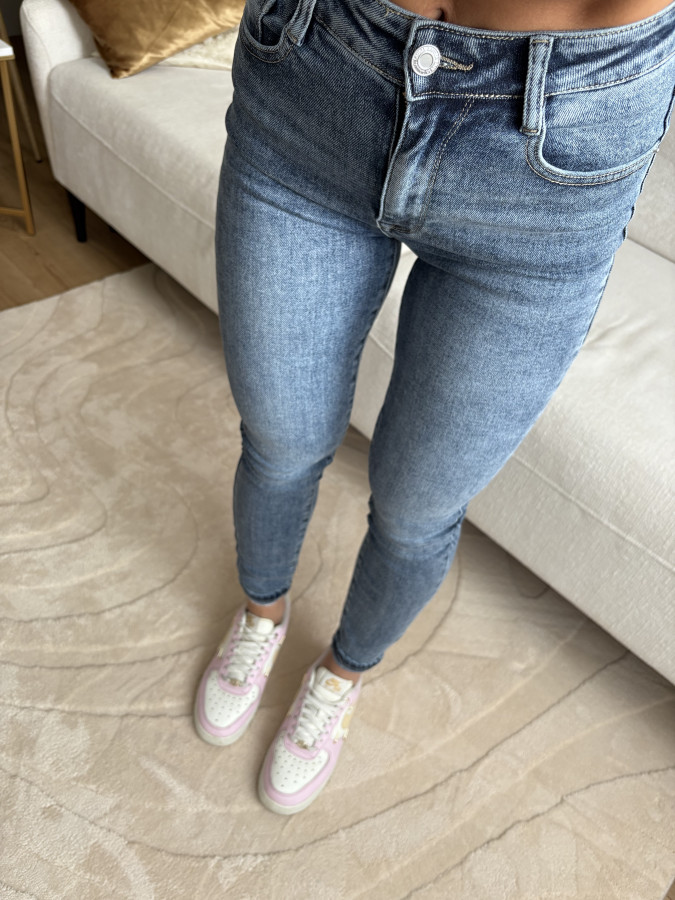 Elastické denim rifle z kvalitnej rifloviny . Sú s vyšším pásom. Na fotke je veľkosť S. Modelka má výšku 170cm.