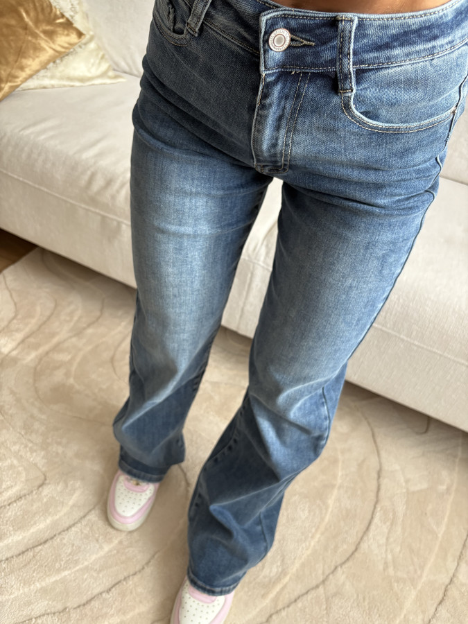 Elastické a pohodlné široké denim rifle z kvalitnej rifloviny . Sú s vyšším pásom. Na fotke je veľkosť L. Modelka má výšku 170cm.