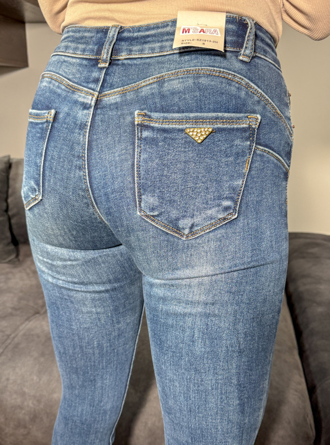 Elastické denim rifle s vyšším pásom . Super sedia na postave, Sú z kvalitnej rifloviny . Veľkosti sedia. Na fotke je veľkosť S.